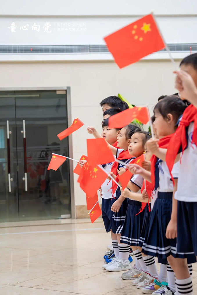 孩子是祖國的花朵,也是文依電氣的花朵,更是我們祖國明天的美好希望!我們生在紅旗下,長在春風里。人民有信仰,國家有力量,民族有希望。目光所至皆為華夏,五星閃耀皆為信仰!愿以吾輩之青春,捍衛盛世之中華!